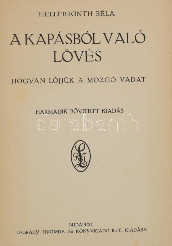 Hellebronth Béla: A kapásból való lövés. Hogyan lőjjük a mozgó vadat? Bp.,[1929.],Légrády, 149 p. 3., bővített kiadás! Kiadói illusztrált papírkötés, kissé szakadt borítóval.