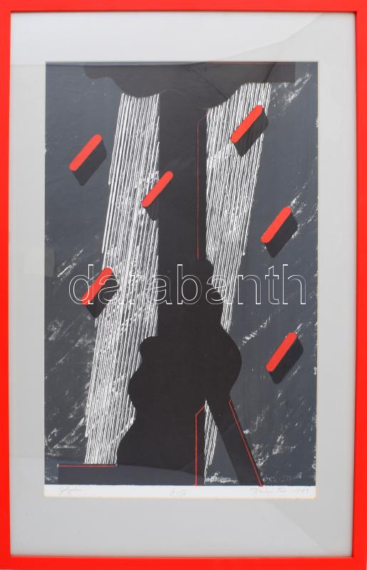 Beschreibung: Deim Pál (1932-2016): Golgota, 1989. Szitanyomat, papír, jelzett, számozott: IX/XV. Üvegezett fakeretben, 52×33,5 cm.