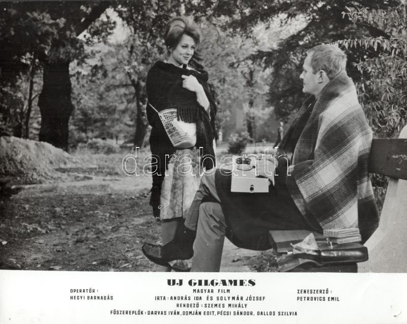 cca 1989 előtt készült, "Uj Gilgames" című magyar film jelenetei és szereplői, 27 db vintage produkciós filmfotó (vitrinfotó, lobbyfotó) ezüst zselatinos fotópapíron, a használatból eredő (esetleges) kisebb hibákkal, 24x30 cm