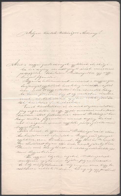 1868 Deák Ferenc (1803-1876) államférfi, miniszter autográf levele Pestről néhai Nagy Sándor zalamegyei királyi főszámvevő lányának felvétele ügyében a Magyar Gazdaasszonyok Egyletéhez. Egy beírt oldal, a levélhez mellékelve az özvegy folyamodványa, melynek elintézéséhez Deák ajánlását adja. A folyamodvány három beírt oldalas. Hozzá Deák Ferenc korabeli vizitkártya fotója.
