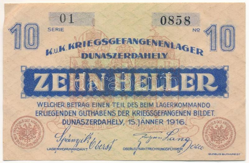 Dunaszerdahely / hadifogolytábor 1916. január 15. 10f "01 0858&qu... https://www.darabanth.com/de/44-Gross-Auktion/44.1/Numismatik/Notgeld-aus-Papier-und-Metall~18182/Dunaszerdahely-hadifogolytabor-1916-januar-15-10f-01-0858-TXF-hajtatlan-sarokhajlasok-H~II3345972