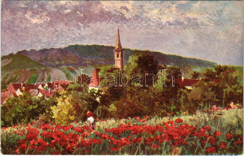 Nagyhöflány, Grosshöflein, Großhöflein; látkép. Kőszeghi Fangh Dezső vízfestmény után. Röttig Gusztáv és Fia nyomása és kiadása / general view s: kőszeghi Fangh Dezső (EK)