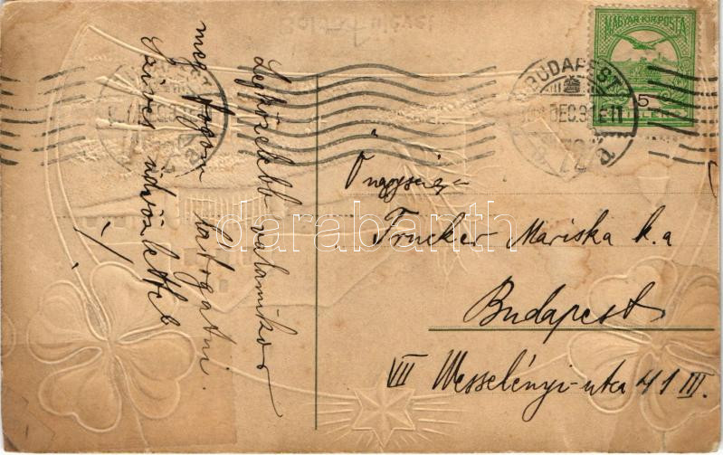 Boldog Újévet! / New Year greeting art postcard with clovers. Art Nouv... https://www.darabanth.com/de/440-Fernauktion/440.0/Ansichtskarten/GruC39Fkarten-Feste~2000048/Boldog-Ujevet-New-Year-greeting-art-postcard-with-clovers-Art-Nouveau-Emb-litho-r~II2891840