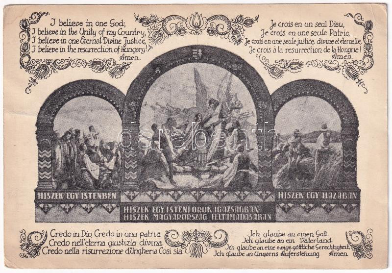 Hiszek egy istenben...A Hiszekegy négy nyelven. Magyar Nemzeti Szövets... https://www.darabanth.com/de/440-Fernauktion/440.0/Ansichtskarten/Irredenta~2000027/Hiszek-egy-istenbenA-Hiszekegy-negy-nyelven-Magyar-Nemzeti-Szovetseg-Hungarian-irredenta-pr~II2855758