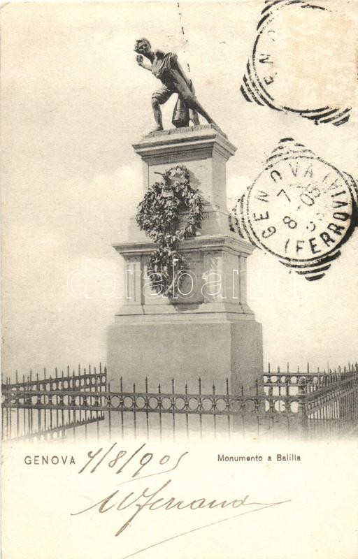 Genova, Monumento a Balilla / patriotic statue https://www.darabanth.com/de/440-Fernauktion/440.0/Ansichtskarten/Italien~2000084/Genova-Monumento-a-Balilla-patriotic-statue~II1198413