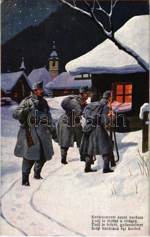 Beschreibung: 1916 Karácsonyest szent varázsa. A Szent István Társulat háborús képeskártyáinak karácsonyi sorozata / WWI K.u.k. military Christmas