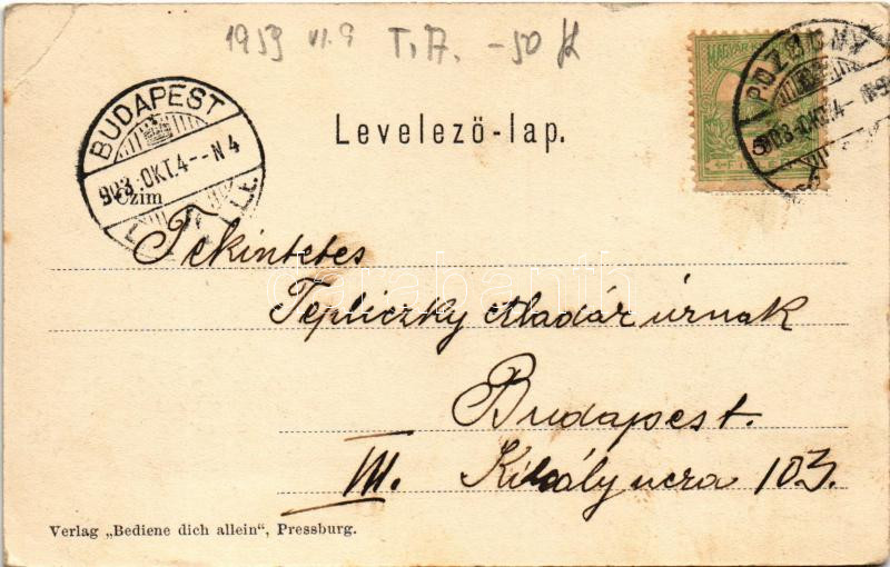 Beschreibung: 1903 Pozsony, Pressburg, Bratislava; vár. Verlag "Bediene dich allein" / castle (EB)
