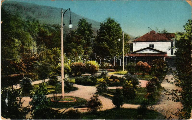 Beschreibung: 1913 Rozsnyó, Roznava; Vasas gyógyfürdő park / spa, bath, park (ragasztónyom / glue mark)