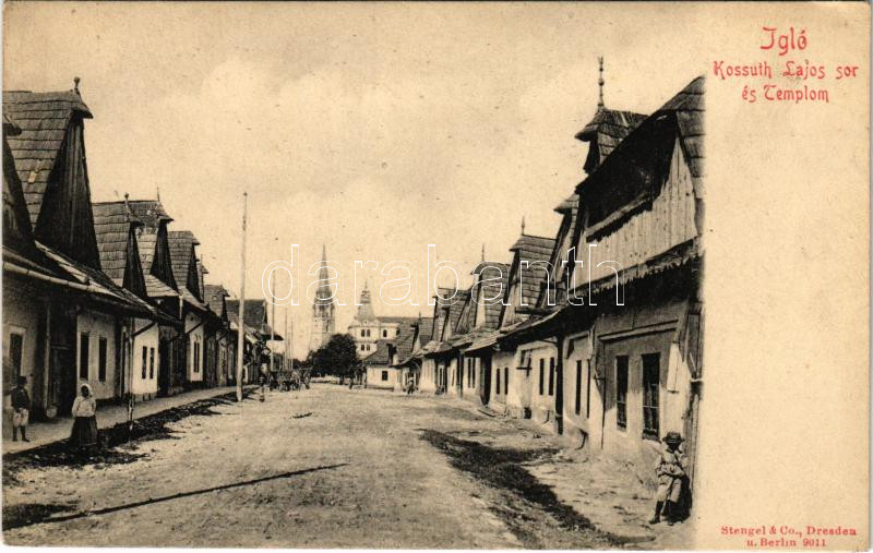 Igló, Zipser Neudorf, Spisská Nová Ves; Kossuth Lajos sor és templom. ... https://www.darabanth.com/de/440-Fernauktion/440.0/Ansichtskarten/Slowakei~2000006/Iglo-Zipser-Neudorf-Spisska-Nova-Ves-Kossuth-Lajos-sor-es-templom-Stengel-Co-street-vie~II2888264