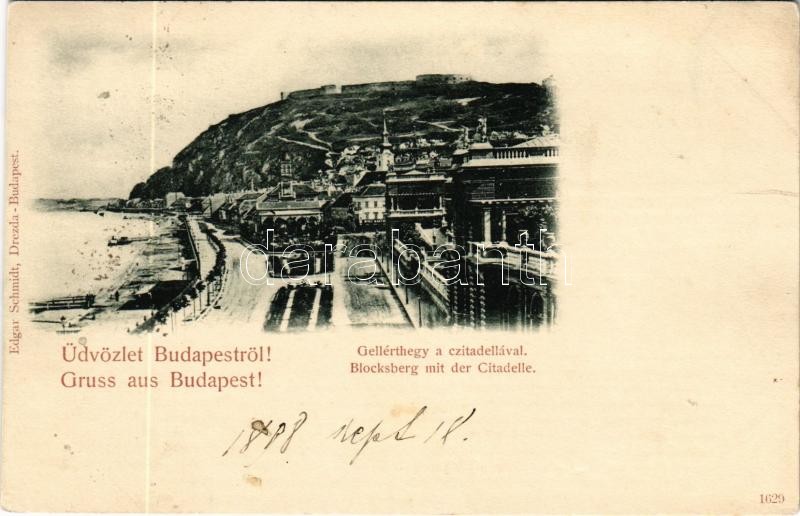 Beschreibung: 1898 (Vorläufer) Budapest XI. Gellérthegy a Citadellával.