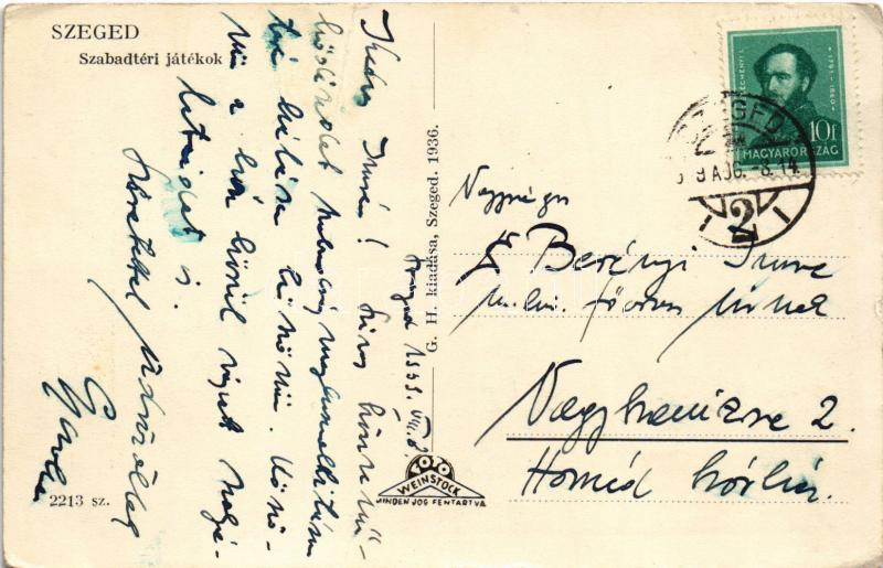 1939 Szeged, Szabadtéri játékok (EK) https://www.darabanth.com/de/440-Fernauktion/440.0/Ansichtskarten/Ungarn~2000005/1939-Szeged-Szabadteri-jatekok-EK~II2855439