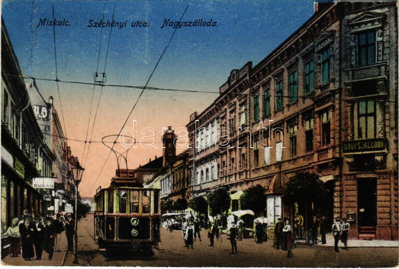 1948 Miskolc, Széchenyi utca, Nagyszálloda, villamos, üzletek (EB) https://www.darabanth.com/de/440-Fernauktion/440.0/Ansichtskarten/Ungarn~2000005/1948-Miskolc-Szechenyi-utca-Nagyszalloda-villamos-uzletek-EB~II2890959