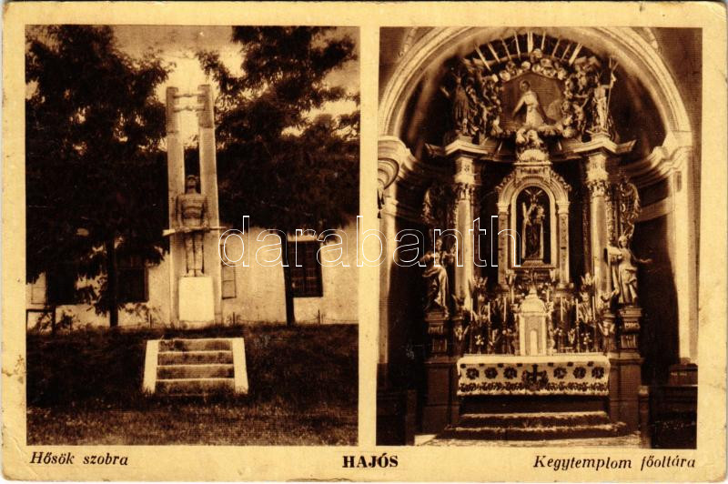 Hajós (Kalocsa), Kegytemplom főoltára belső, Hősök szobra (EK) https://www.darabanth.com/de/440-Fernauktion/440.0/Ansichtskarten/Ungarn~2000005/Hajos-Kalocsa-Kegytemplom-fooltara-belso-Hosok-szobra-EK~II2888831