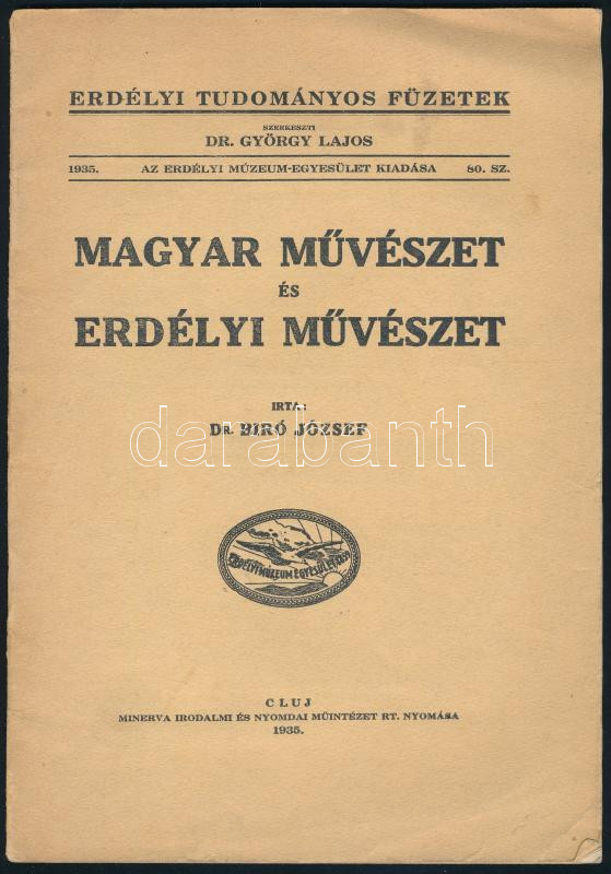 Bíró József: Magyar művészet és erdélyi művészet. Erdélyi Tudományos Füzetek 1935. 80 sz. Cluj/Kolozsvár, 1935., Erdélyi Múzeum-Egyesület,(Minerva-ny.), 28 p. Kiadói papírkötés, a borítón kis folttal, kis szakadással.