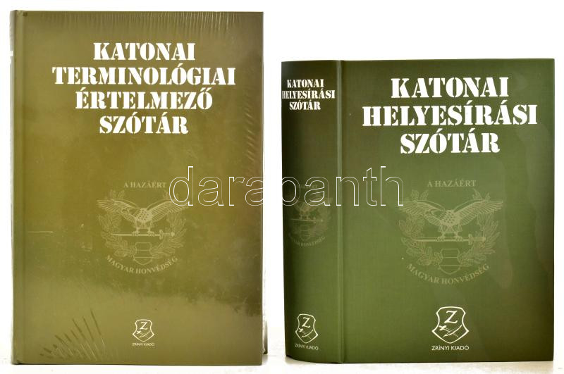 2 db militária témájú könyv: Katonai HelyesÃrási Szótár. Budapest, 2013, ZrÃnyi. Második, átdolgozott kiadás. Kiadói kartonált papÃrkötés, jó állapotban. + Katonai terminológiai értelmezÅ‘ szótár. Budapest, 2015, ZrÃnyi. Kiadói kartonált papÃrkötés, zsugorfóliában.