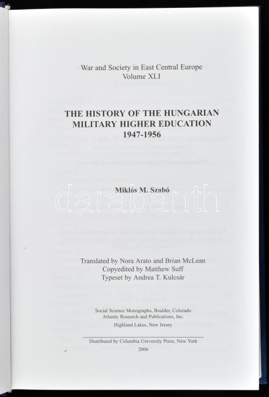 Szabó M. Miklós: The History of the Hungarian Military Higher Education 1947-1956. A szerző, Szabó M. Miklós (1942-2021) altábornagy, hadtörténész által Erdős Tibor (1928-2022) Széchenyi-díjas közgazdász részére DEDIKÁLT példány. War and Society in East Central Europe Vol. XLI. New York, 2006., Columbia University Press. Angol nyelven. Kiadói egészvászon-kötésben.