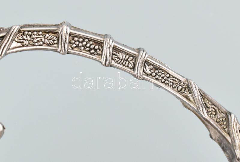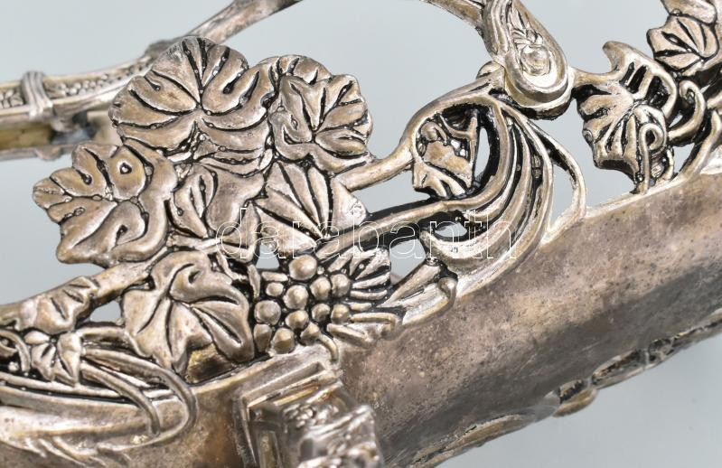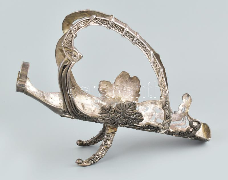 Beschreibung: Ezüstözött alpakka pezsgős / borosüveg tartó állvány. Nyitható nyakrésszel. XX. sz. eleje. 28 cm