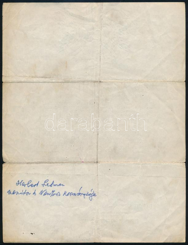 1951 Herbert Lehman (1878-1963) szenátor levele Lázár Miklóshoz https://www.darabanth.com/de/440-Fernauktion/440.0/Kunst-Dokumente-andere-Sammelgebiete/Dokument~500020/1951-Herbert-Lehman-1878-1963-szenator-levele-Lazar-Mikloshoz~II2894562
