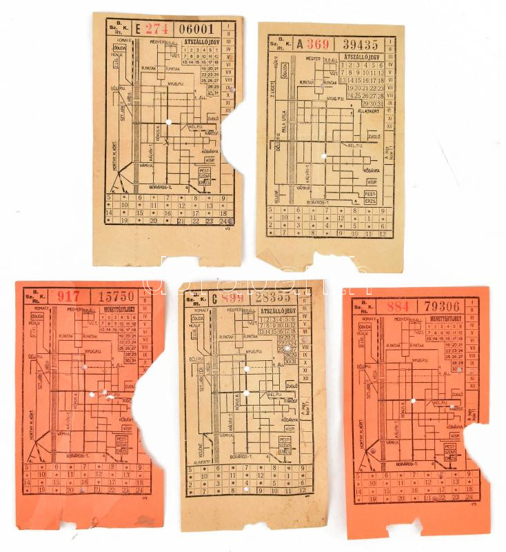 Beschreibung: 5 db vegyes BSzKRt. jegy
