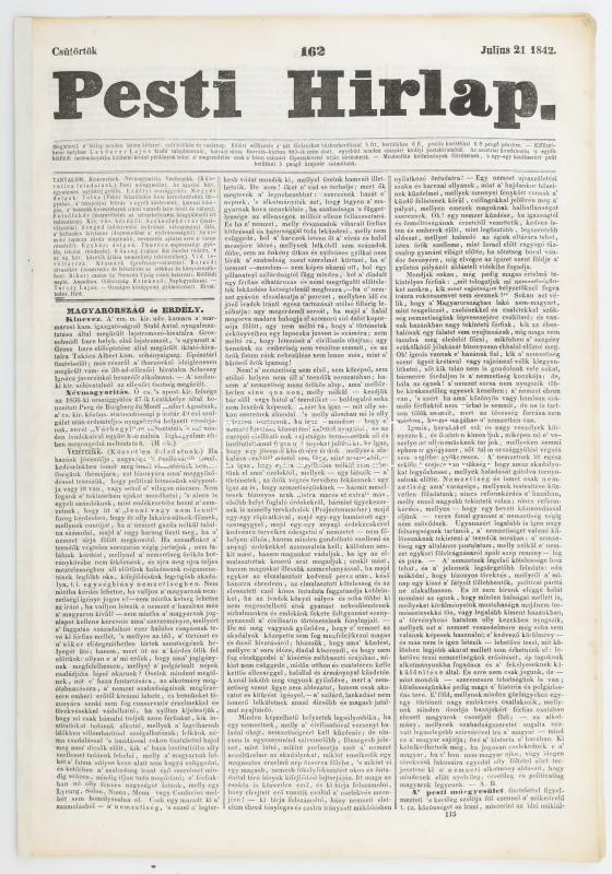 1842 Pesti Hírlap 162. sz. Julius 21. 1842. Szerk.: Kossuth Lajos. Pest, Landerer Lajos, restaurált, 511-520 p. Benne korabeli hírekkel, érdekes írásokkal, korabeli reklámokkal, közte Emich Gusztáv újonnan felállított könyvkereskedésének reklámjával, gőzhajómenetrendekkel, gabonaárakkal.