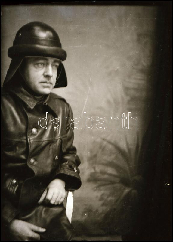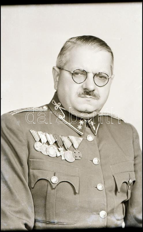 2 db katonai negatív: sisakot viselő katona + katonatiszt kitüntetésekkel (Károly-csapatkereszt, Nemzetvédelmi Kereszt, Magyar Háborús Emlékérem, stb.), 9,5x6 cm