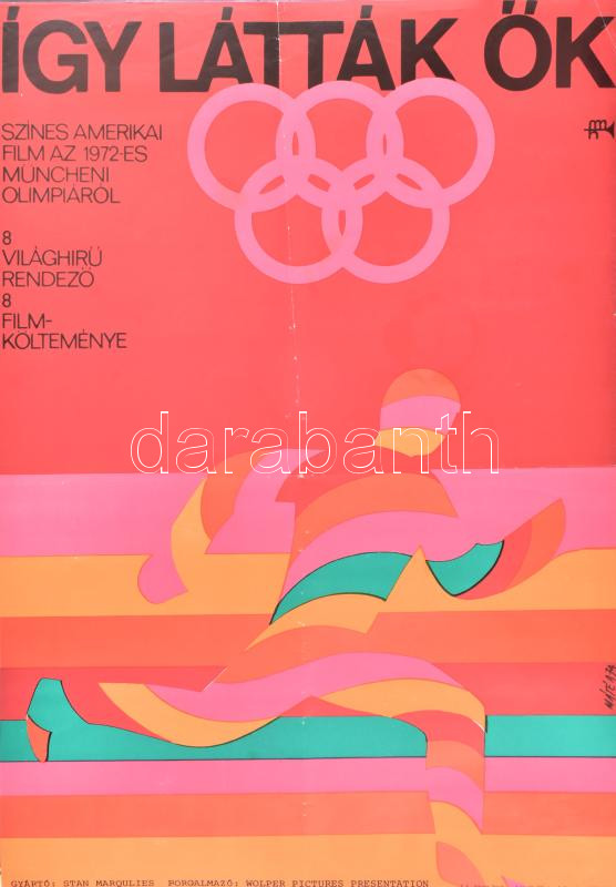 1974 Máté András (1921-2000):"Így látták ők", színes amerikai film az 1972-es müncheni olimpiáról, film plakát, Magyar Hirdető, Bp., Offset-ny., hajtásnyomokkal, 60x40 cm