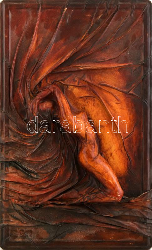 Beschreibung: Oláh Sándor (1959-): Női akt. Bőr kép, plasztika. Jelezve balra lent a bőrképen és a hátoldalán bélyegzővel. Kopásnyomokkal. 60x37 cm