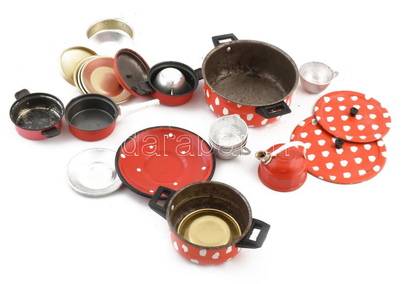 Retró babakonyha kiegészítők, zománcos fém, vegyes méretben. https://www.darabanth.com/de/440-Fernauktion/440.0/Kunst-Dokumente-andere-Sammelgebiete/Spielzeuge~500015/Retro-babakonyha-kiegeszitok-zomancos-fem-vegyes-meretben~II2891393