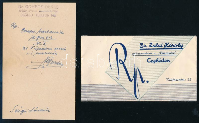 Dr. Zalai Károly gyógyszertára a Reményhez Cegléden, receptboríték, re... https://www.darabanth.com/de/440-Fernauktion/440.0/Kunst-Dokumente-andere-Sammelgebiete/Werbungen~500024/Dr-Zalai-Karoly-gyogyszertara-a-Remenyhez-Cegleden-receptboritek-receptekkel~II2888933