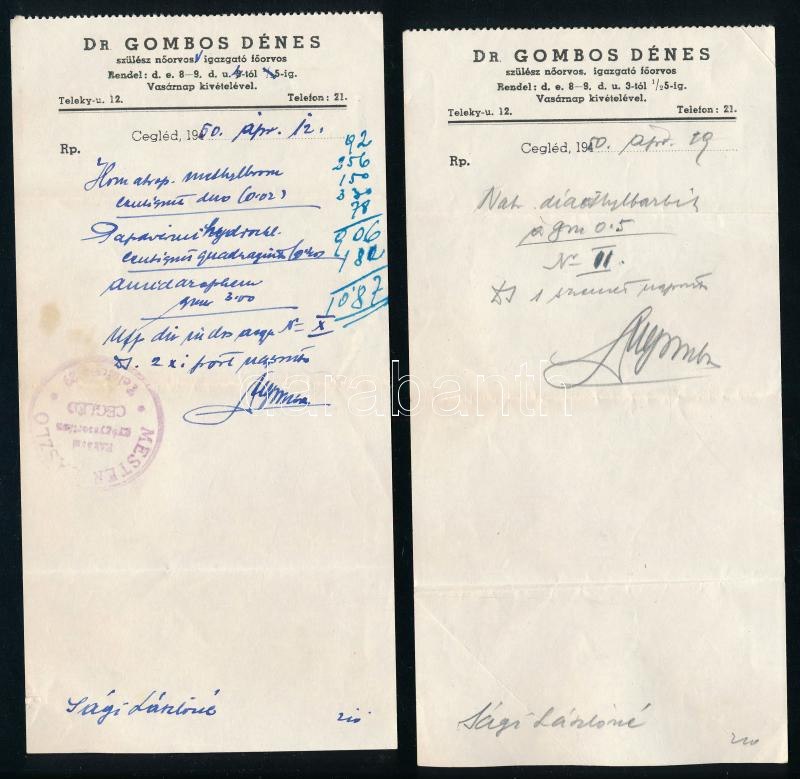 Beschreibung: Dr. Zalai Károly gyógyszertára a Reményhez Cegléden, receptboríték, receptekkel
