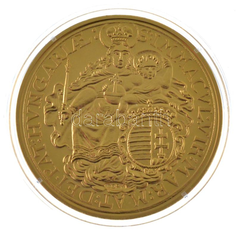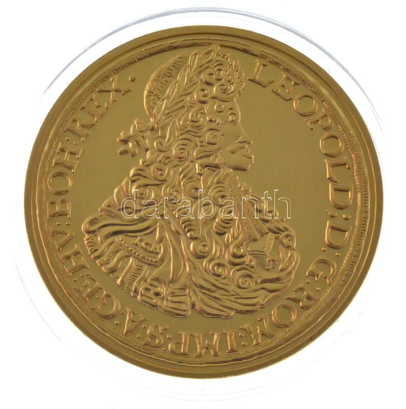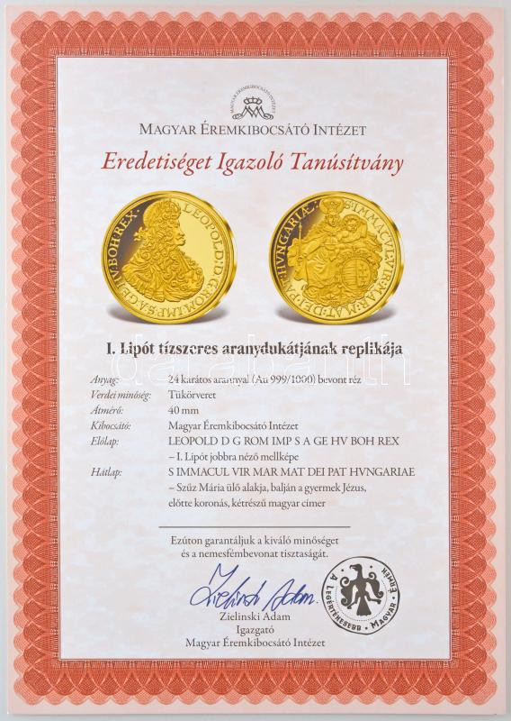 DN "A legértékesebb magyar érmék - I. Lipót tízszeres aranydukátjának replikája" aranyozott Cu emlékérem, "COPY" jelzéssel, tanúsítvánnyal (40mm) T:PP