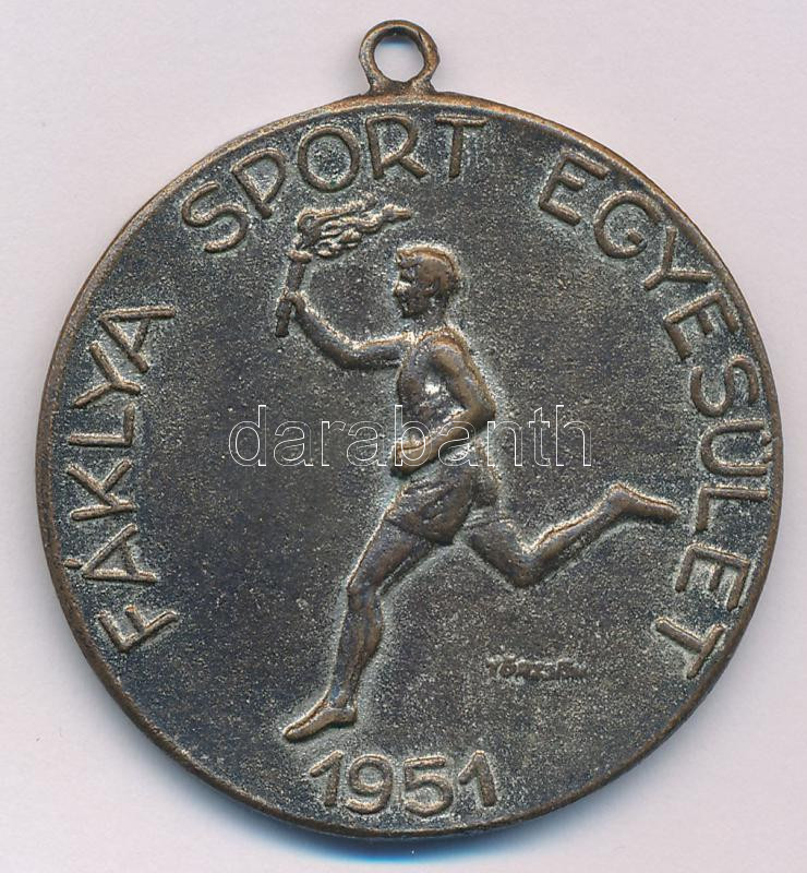 Törzsök Károly (1906-1964) 1953. "Fáklya Sport Egyesület 1951" kétoldalas ezüstözött bronz díjérem mellszalag nélkül, hátoldalán "ASZTALI TENISZ II. 1953." gravírozással (40mm) T:XF