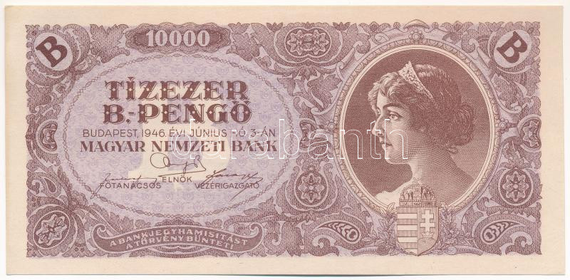 1946. 10.000BP T:AU Adamo P35 https://www.darabanth.com/de/440-Fernauktion/440.0/Numismatik/Ungarische-Banknoten~1500007/1946-10000BP-TAU-Adamo-P35~II2889552