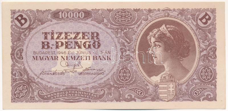 1946. 10.000BP T:AU Adamo P35 https://www.darabanth.com/de/440-Fernauktion/440.0/Numismatik/Ungarische-Banknoten~1500007/1946-10000BP-TAU-Adamo-P35~II2889556