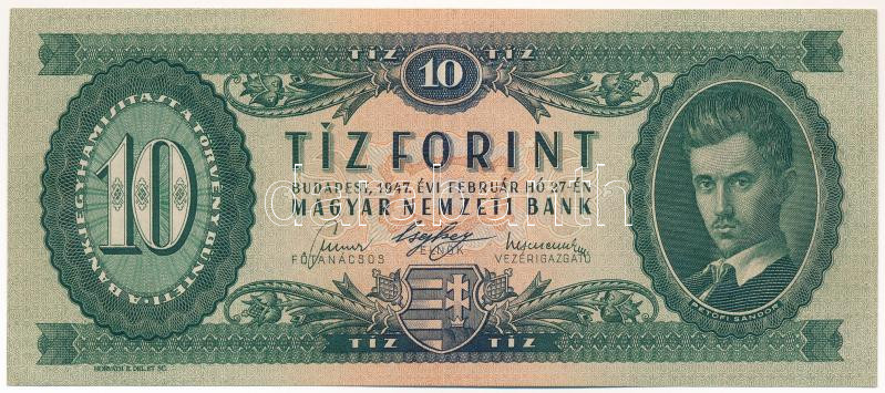Beschreibung: 1947. 10Ft "A 333 075835" T:F szép papír