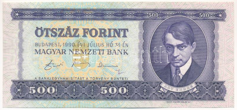 Beschreibung: 1990. 500Ft "E 133 069996" hátoldalon nyomdai festékfolttal T:AU