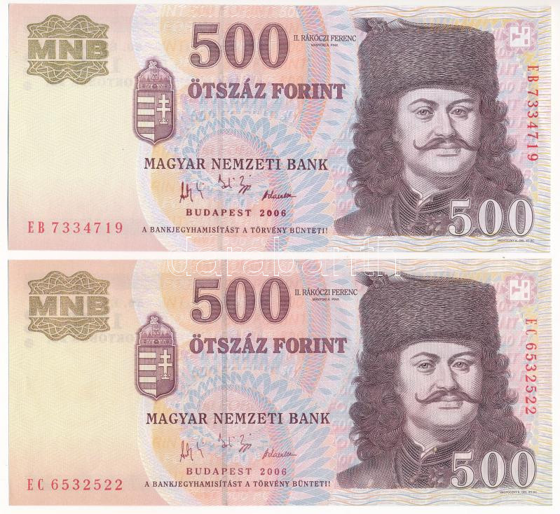 Beschreibung: 2006. 500Ft "A forradalom 50. évfordulója 1956. október 23." (2db, "EB" és "EC") T:UNC,AU Adamo F54EE