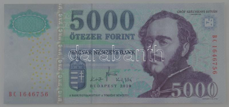 2010. 5000Ft "BC 1646756" T:VF https://www.darabanth.com/de/440-Fernauktion/440.0/Numismatik/Ungarische-Banknoten~1500007/2010-5000Ft-BC-1646756-TVF~II2887817