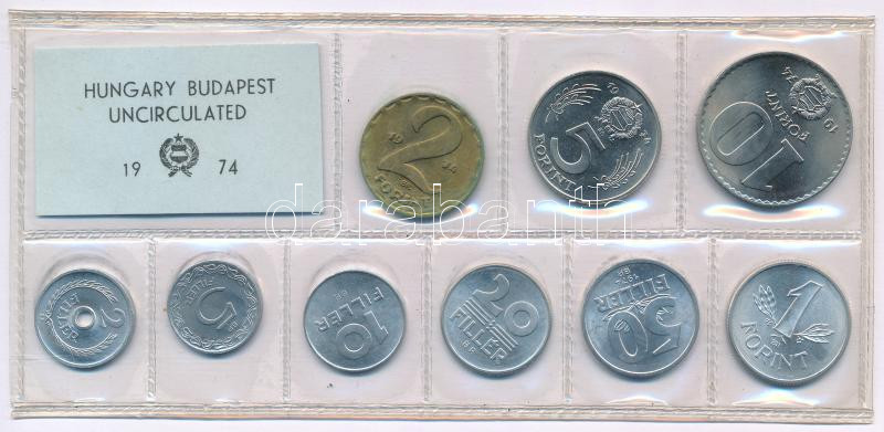 1974. 2f-10Ft (9xklf) érmés forgalmi sor fóliatokban T:UNC kis patina ... https://www.darabanth.com/de/440-Fernauktion/440.0/Numismatik/Ungarische-Kursmunzsatze~1500010/1974-2f-10Ft-9xklf-ermes-forgalmi-sor-foliatokban-TUNC-kis-patina--Adamo-FO7~II2869052