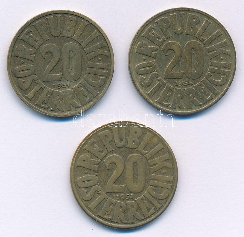 Austria 1950-1954. 20 ... https://www.darabanth.com/de/440-Fernauktion/440.0/Numismatik/Weltweit-Munzen~1500017/Ausztria-1950-1954-20gr-Al-bronz-3xklf-TXF-Austria-1950-1954-20-Groschen-Al-bronze-3xdiff-C~II2892964