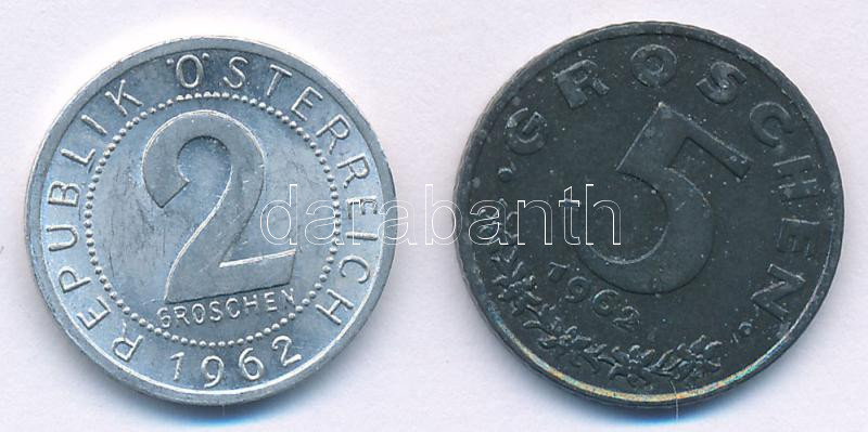 Beschreibung: Ausztria 1962. 2gr Al + 5gr Zn T:AU,XF Austria 1962. 2 Groschen Al + 5 Groschen Zn C:AU,XF