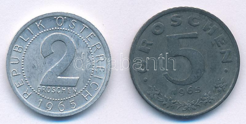 Beschreibung: Ausztria 1965. 2gr Al + 5gr Zn T:AU Austria 1965. 2 Groschen Al + 5 Groschen Zn C:AU