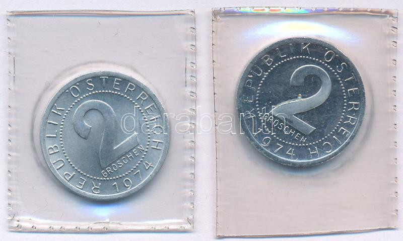 Beschreibung: Ausztria 1974. 2gr Al (2xklf) T:UNC, AU (PP) Austria 1974. 2 Groschen Al (2xdiff) C:UNC, AU (PP)