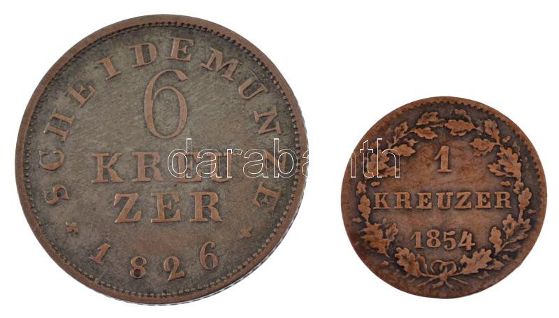 Német Államok / Hessen-Darmstadt 1826. 6kr Ag + 1854. 1kr Ag T:XF,VF