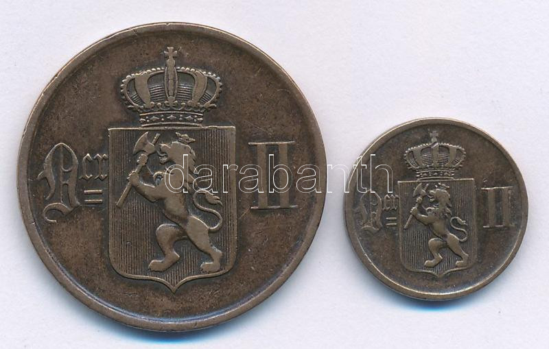 Beschreibung: Norvégia 1878. 5ö bronz + 1884. 1ö bronz T:XF,VF