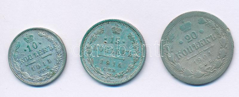 Orosz Birodalom 1904. 20k Ag + 1911. 10k Ag + 1914. 15k Ag T:XF-F Russian Empire 1904. 20 Kopeks Ag + 1911. 10 Kopeks Ag + 1914. 15 Kopeks Ag C:XF-F