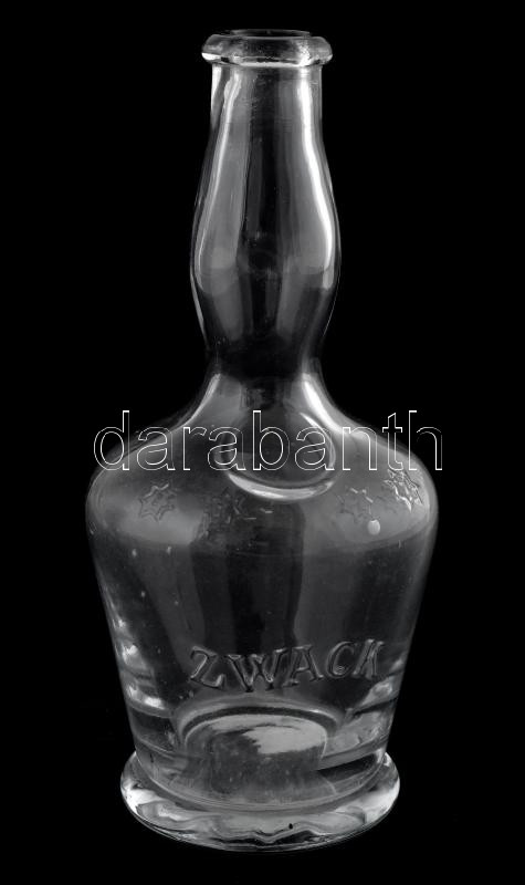 Zwack, Gschwindt és zöld palack, színtelen üveg dombornyomott csillagokkal, jelzett: Zwack, m: 19 cm, Gschwindt barna üveg palack, szájperemén apró csorbulás, jelzett: dombornyomott Gschwindt Budapest, m: 14 cm, zöld üveg palack, m: 17 cm