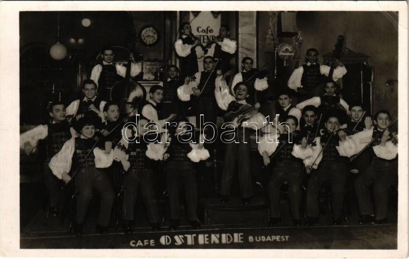1941 Budapest VII. Café Ostende kávéház, belső, Rajkó cigány zenekar. ... https://www.darabanth.com/de/441-Fernauktion/441.0/Ansichtskarten/Musik-Musikanten~1500057/1941-Budapest-VII-Cafe-Ostende-kavehaz-belso-Rajko-cigany-zenekar-Farago-Laszlo-Artist~II2905352