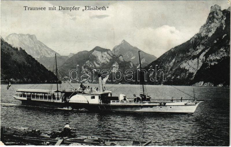 Traunsee mit Dampfer "Elisabeth" / steamship (EK) https://www.darabanth.com/de/441-Fernauktion/441.0/Ansichtskarten/Schiffe~1500027/Traunsee-mit-Dampfer-Elisabeth-steamship-EK~II2905427
