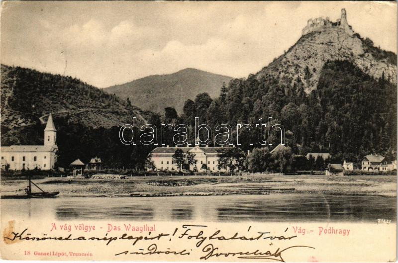 1904 Vágváralja, Vág-Podhragy, Povazské Podhradie (Vágbeszterce, Povazská Bystrica); Podrágyvár, templom, kastély, Vágvölgy. Gansel Lipót kiadása / castle, church in Váh Valley / Povazie, Povazsky hrad (EK)